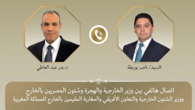جرى اتصال هاتفي بين الدكتور بدر عبد العاطي، وزير الخارجية والهجرة وشئون المصريين بالخارج، والسيد ناصر بوريطة، وزير الشؤون الخارجية…