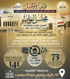 أطلقت وزارة الشؤون النيابية والقانونية والتواصل السياسي سلسلة توعوية جديدة تحت عنوان “توعية وتواصل” بهدف تعزيز الوعي الانتخابي لدى المواطنين قبل انطلاق المرحلة الثانية من انتخابات مجلس النواب لعام 2025، والتي تشمل 13 محافظة من بينها القاهرة والشرقية والغربية والدقهلية وكفر الشيخ والقليوبية ودمياط وشمال وجنوب سيناء.