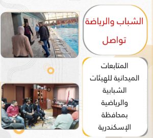 تواصل وزارة الشباب والرياضة تنفيذ المتابعات الميدانية لعدد من الهيئات الشبابية والرياضية بمحافظة الإسكندرية، لمتابعة تنفيذ الخطط المركزية والمحلية، ورصد الفرص الاستثمارية، وبحث معوقات التنفيذ.