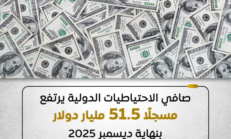 الاحتياطي الأجنبي يقفز 51.5 مليار دولار بنهاية 2025