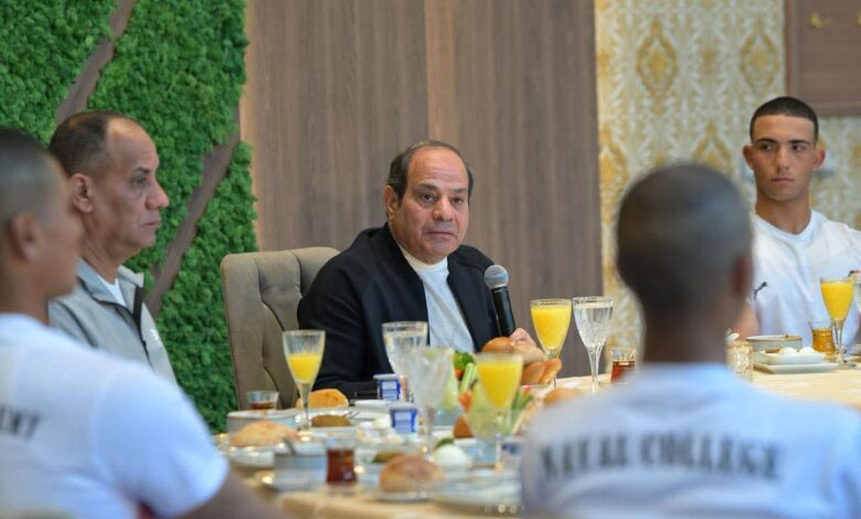 كما تناول الرئيس الإفطار مع الطلاب وأجرى حوارًا معهم حول أهمية الرياضة والانضباط، وأكد حرص الدولة على إعداد كوادر قادرة على مواجهة التحديات الداخلية والخارجية وتعزيز الاستقرار الإقليمي.