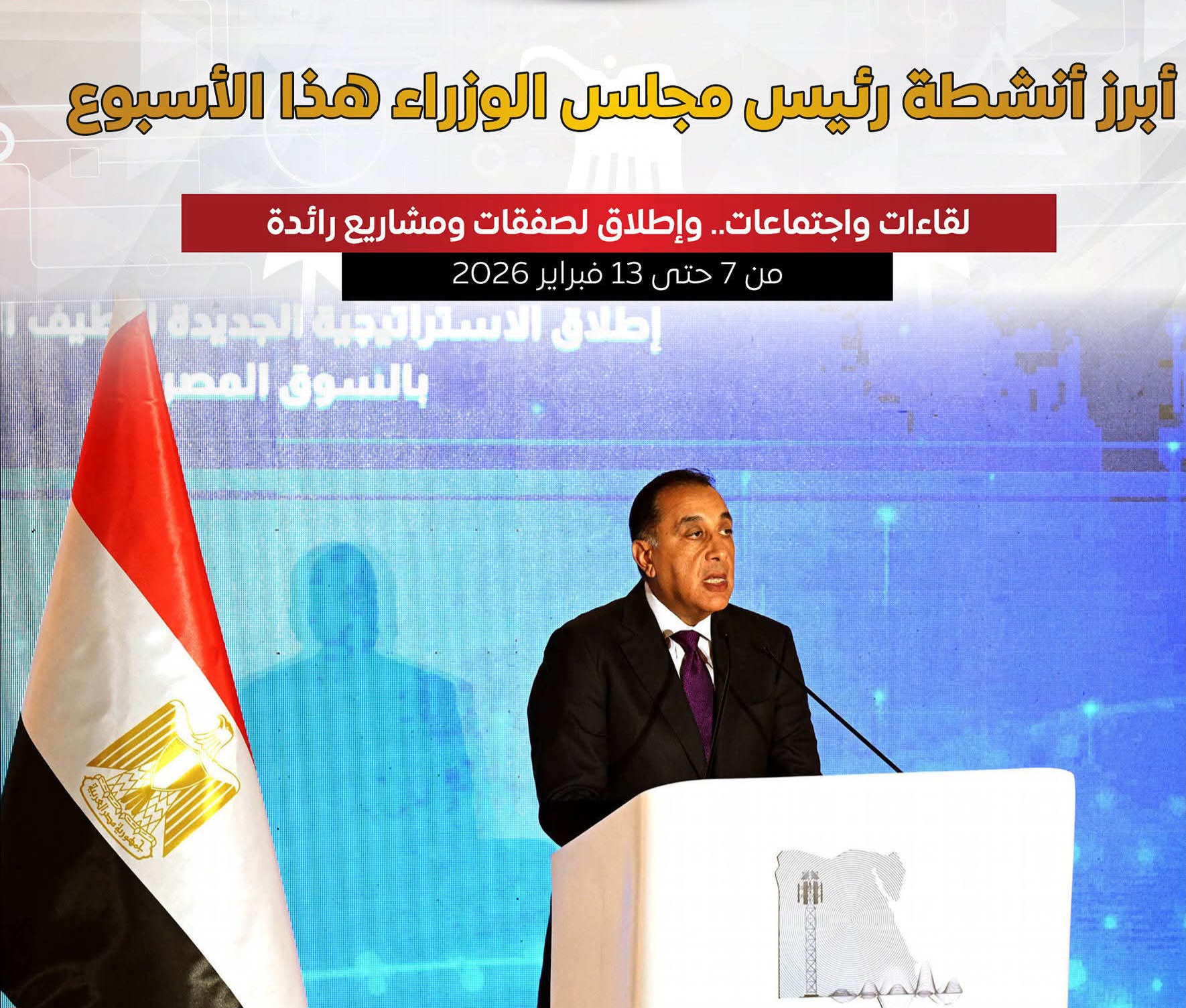 كما استعرض الإنفوجراف اجتماع رئيس الوزراء مع نائبه للشؤون الاقتصادية، حيث شدد على أن هيكلة الهيئات الاقتصادية وشركات الدولة تمثل أحد أهم ملفات العمل خلال المرحلة الحالية، بهدف رفع كفاءة الأداء وتحقيق التنمية المستدامة.