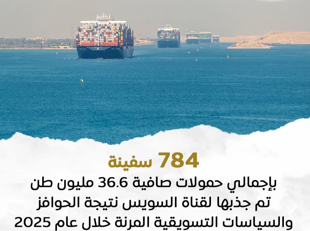 أعلنت هيئة قناة السويس أن الحوافز والسياسات التسويقية المرنة التي أطلقتها خلال عام 2025 أسفرت عن جذب 784 سفينة بإجمالي حمولات صافية بلغت 36.6 مليون طن، محققة إيرادات قدرها 170.4 مليون دولار، في مؤشر إيجابي على استعادة معدلات العبور وتحسن حركة الملاحة بالقناة.