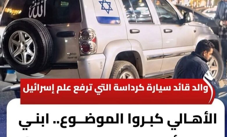 قال والد الشاب قائد السيارة التي أثير الجدل حولها في منطقة كرداسة بعد تداول صور لرفع علم يُعتقد أنه علم دولة إسرائيل، إن نجله «لا يعلم أن هذا العلم يعود لإسرائيل»، مؤكدًا أن «الأهالي كبروا الموضوع أكثر من حجمه».