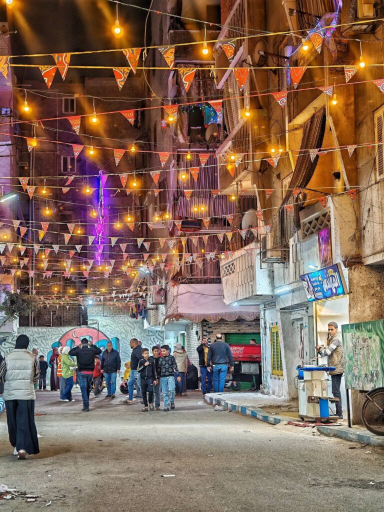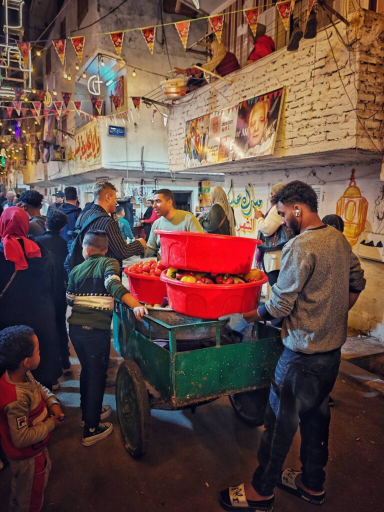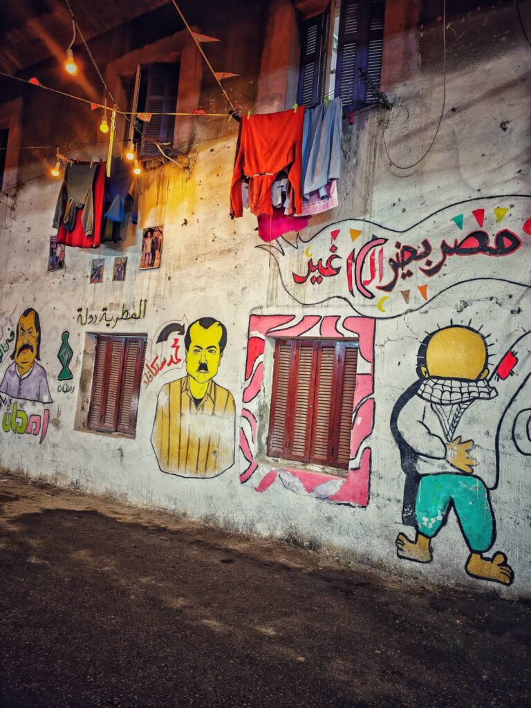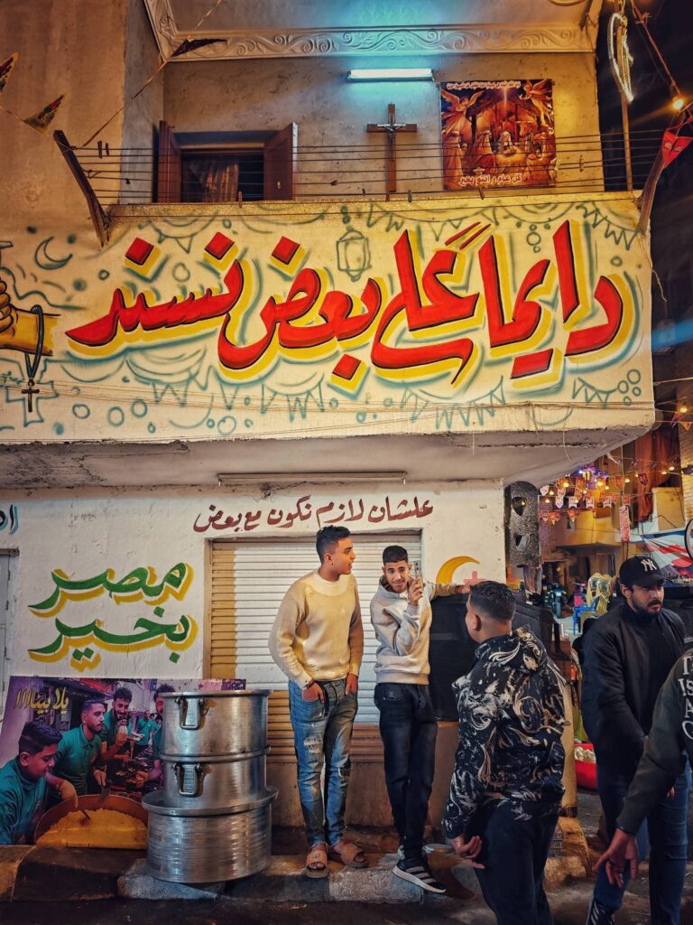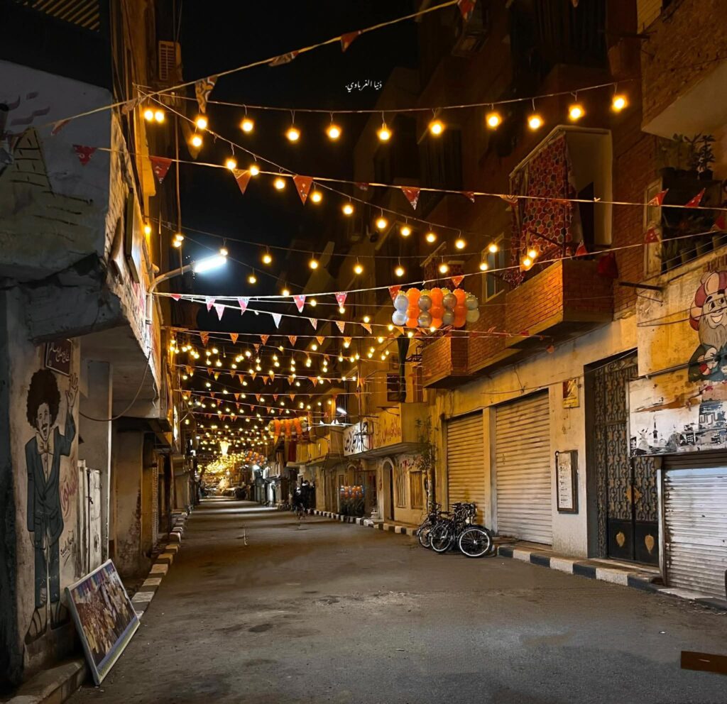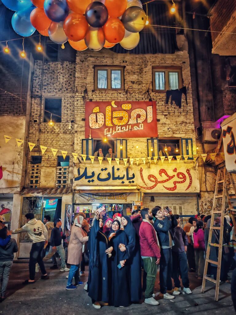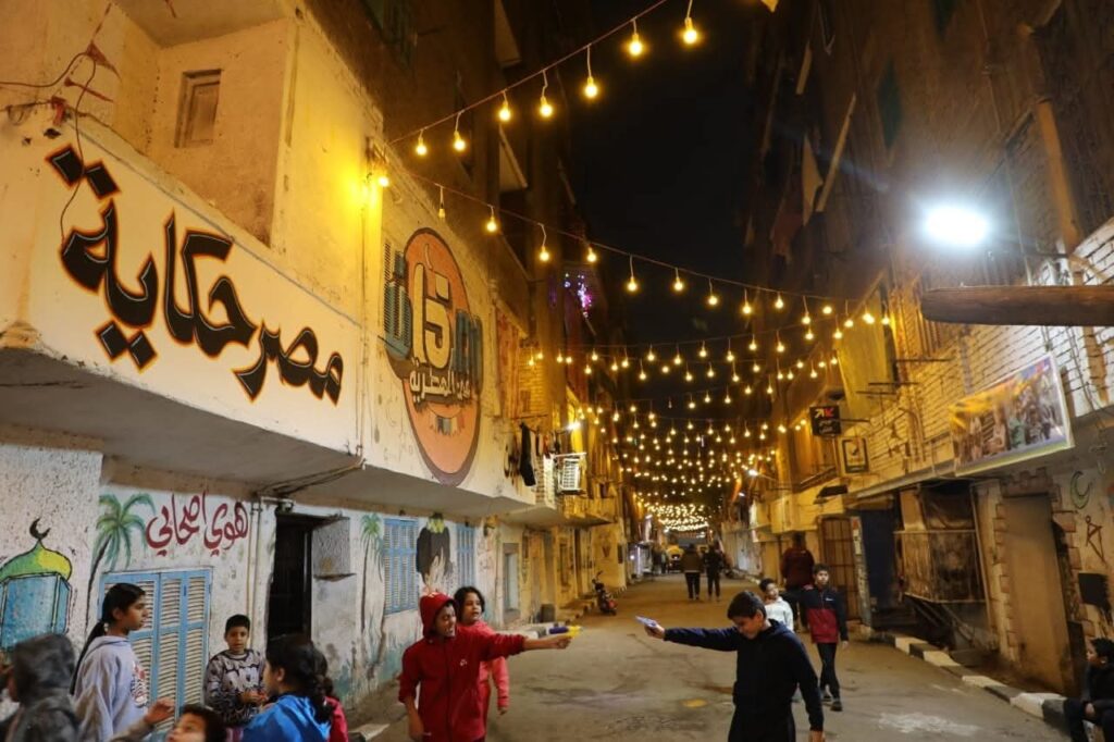 ولا يقتصر المشهد على إعداد الطعام فقط، بل حرص الأهالي على تحويل شوارع المطرية إلى لوحة احتفالية كبيرة، حيث امتلأت الطرقات بالفوانيس والزينة الرمضانية التي تضيء الحي بالكامل، فيما قام عدد من الشباب برسم جداريات ولوحات فنية على جدران الشوارع تعبر عن روح شهر رمضان وقيم المحبة والتسامح، لتبدو المنطقة وكأنها معرض مفتوح للفن الشعبي المصري، ورافق ذلك رسم الابتسامات على وجوه المارة والزوار.