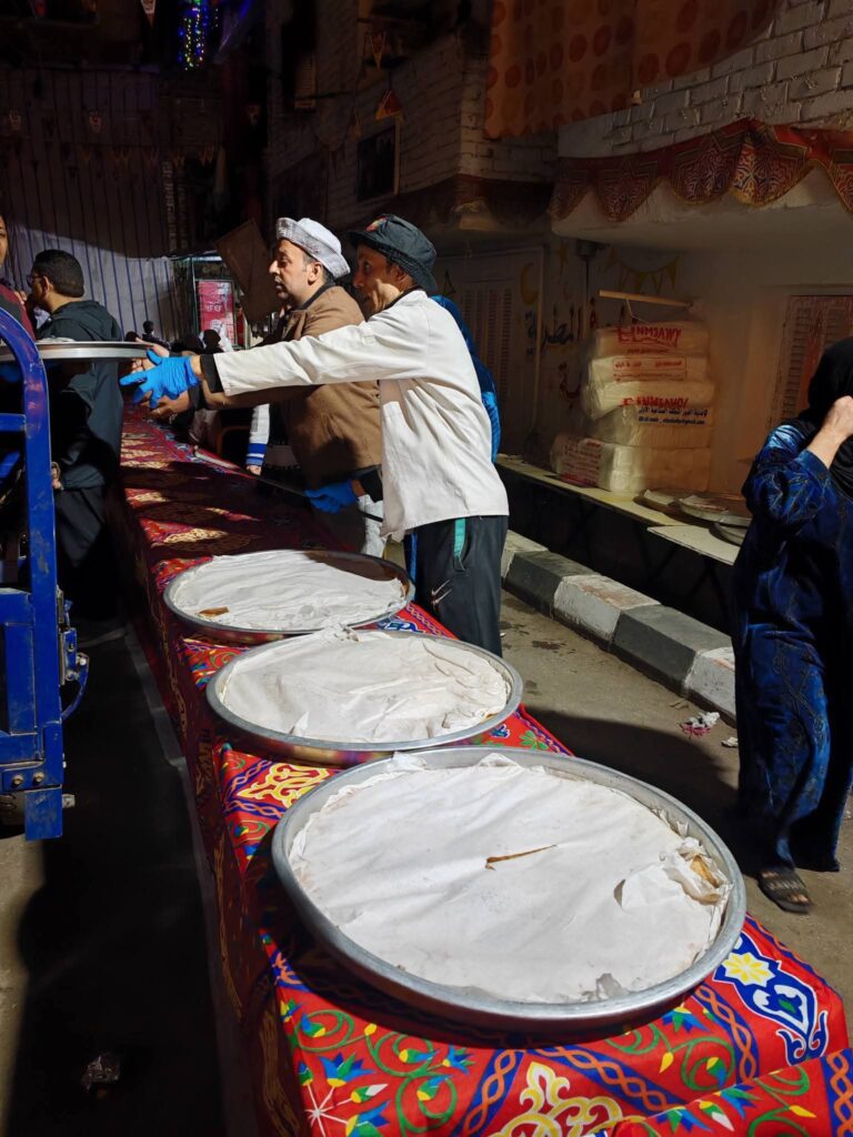 ويشارك في تجهيز المائدة آلاف المتطوعين من أبناء المطرية، حيث تتولى العديد من الأسر إعداد الطعام داخل المنازل، بينما يعمل الشباب على تنظيم الشوارع وتجهيز أماكن الجلوس وتوزيع الوجبات، في صورة تعكس واحدة من أروع صور التكافل الاجتماعي والعمل الجماعي بين أهالي المنطقة، وسط أجواء مليئة بالبهجة والضحك والابتسامات.