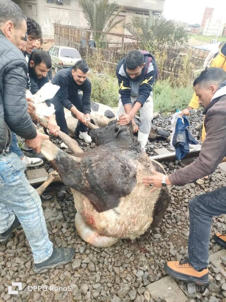 قطار يصدم 6 عجول بالسنانية في دمياط دون إصابات بشرية