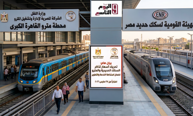 بيان رسمي: وزارة النقل تعلن تحريك أسعار تذاكر السكك الحديدية وشرائح بمترو الأنفاق اعتباراً من اليوم