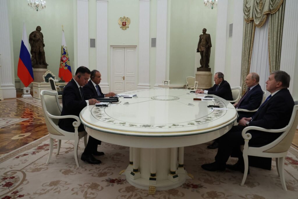 نقل الوزير عبد العاطي تحيات الرئيس عبد الفتاح السيسي رئيس الجمهورية إلى الرئيس الروسي، وقام بتسليم رسالة خطية من رئيس الجمهورية إلى رئيس روسيا الاتحادية، تناولت سبل تطوير العلاقات الثنائية وتعزيز الشراكة الاستراتيجية بين البلدين، والحرص على مواصلة التنسيق إزاء القضايا الإقليمية والدولية محل الاهتمام المشترك.